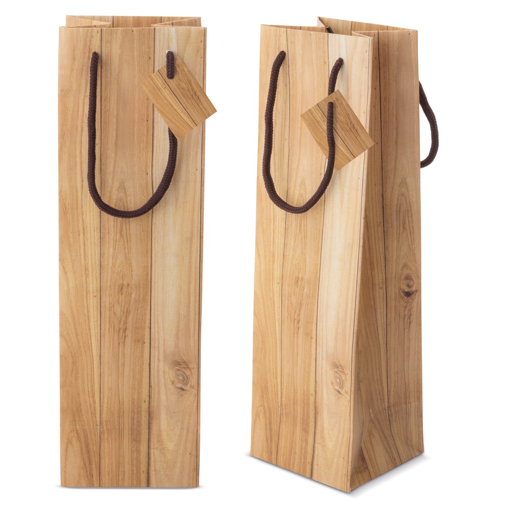 Bolsa de papel efecto madera, capacidad de 1 botella.