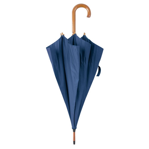Elegante paraguas de paseo con mango de acero y empuñadura de madera.