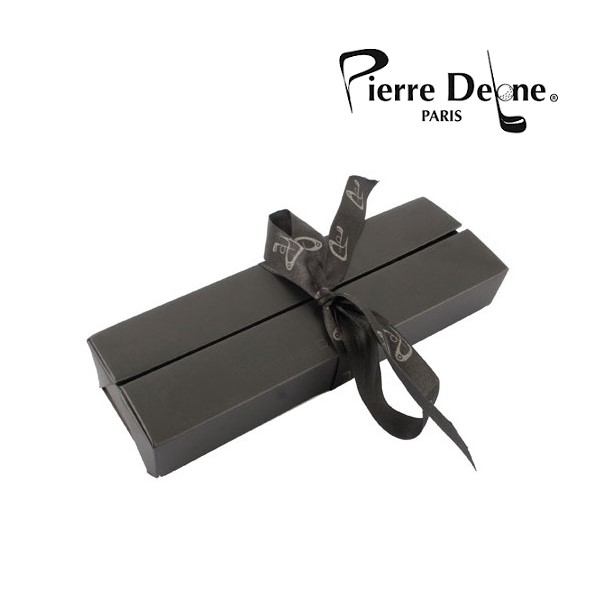 Estuche de cartón de elegante diseño. Marca Pierre Delone. Lazo fabricado en satén.
