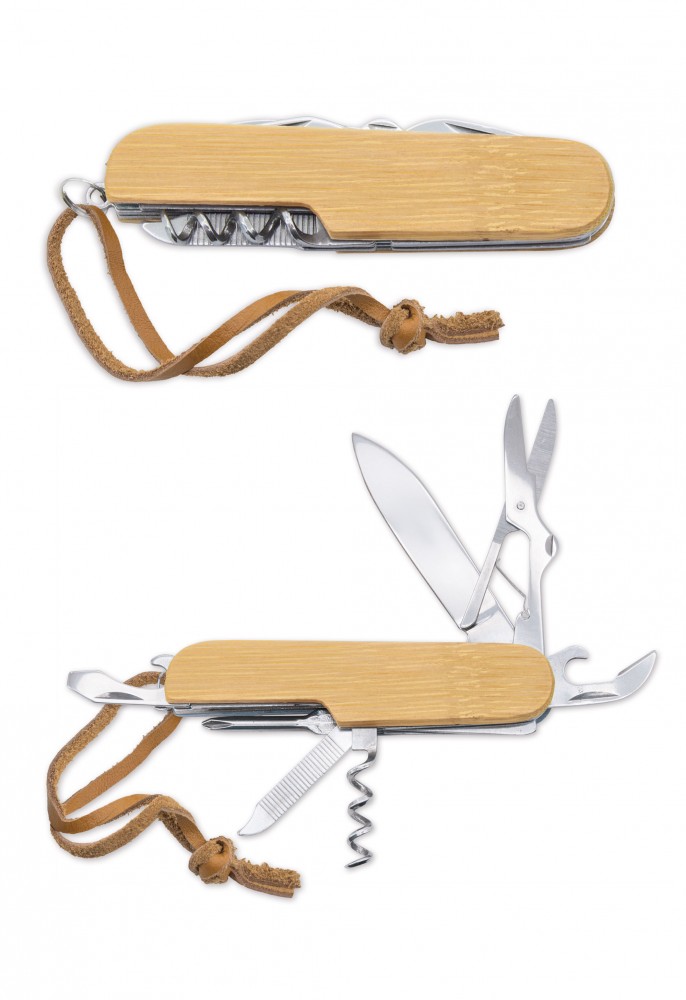 Navaja multifonción fabricada en bambú.