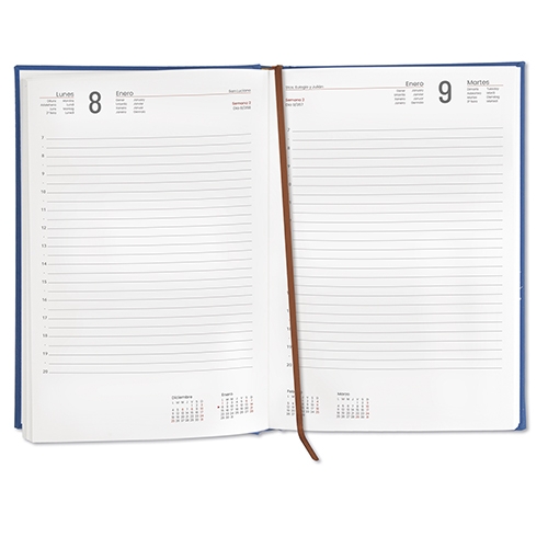 Agenda 2026 con distribución día-página y tapas de micro fibra, agradable al tacto.