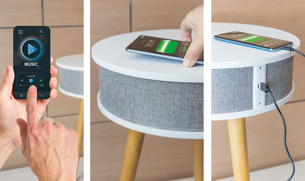 Altavoces 360º con cargador inalámbrico incorporado, autonomía 7,5h aprox.(4000 mAh) Carga inalámbrica 15W Incluye cable de carga USB/C Recepción de llamadas Reproductor de música bluetooth.