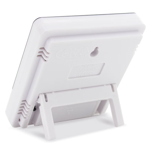 Su diseño en la parte trasera, permite su colocación en pared o mesa, gracias a su pie plegable.
