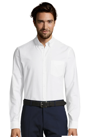 Camisa de tejido oxford. 70% algodón 30% poliéster. Corte ajustado. Mangas largas. Cuello con botones. Puños ajustables. Tapeta de 7 botones. Bolsillo pecho izquierdo