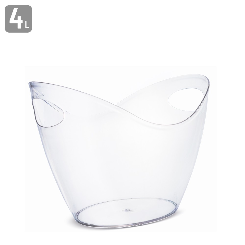 Cubitera transparente con capacidad de 4 litros, resistente, ligera y flexible con asas laterales.